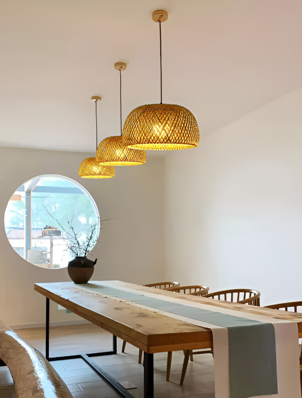 Tillverkad av naturlig bambus och rattan, är pendellampan lätt men ändå robust och erbjuder hållbar kvalitet.