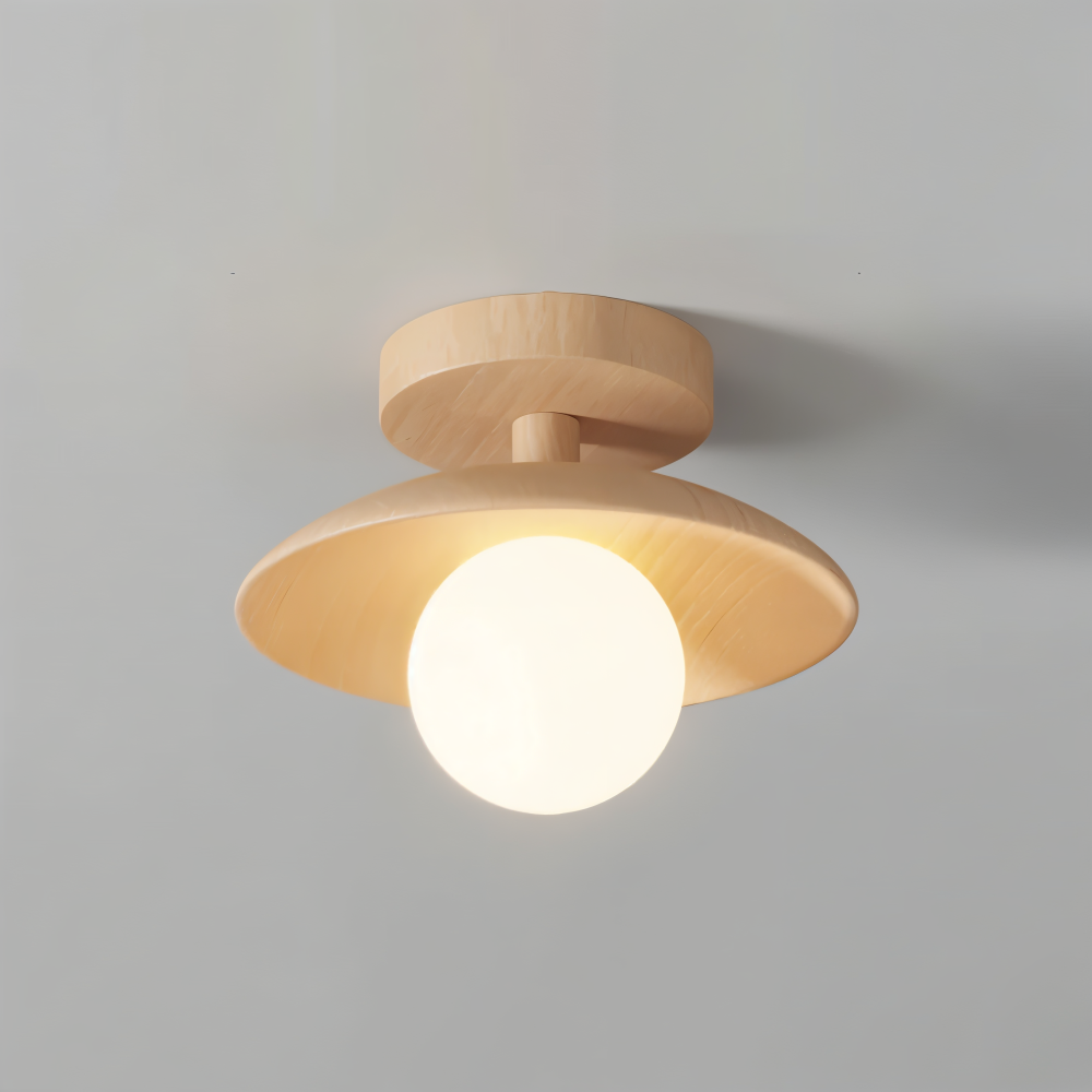 CentraOrb Trä Taklampa - Halvinfälld Lampa med Inbyggd LED Belysning