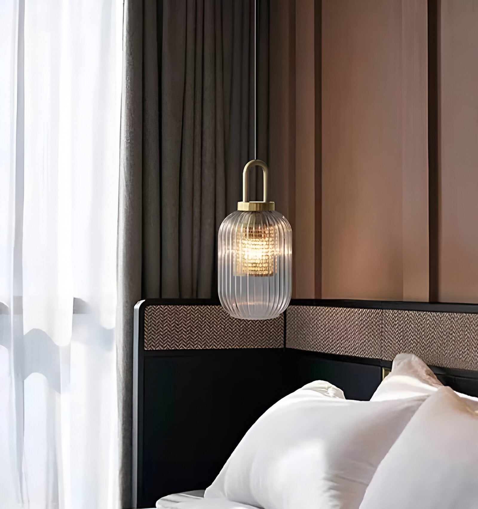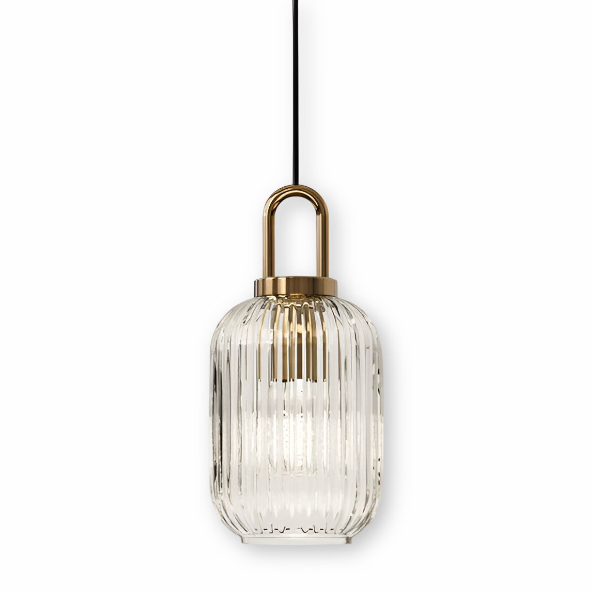 ClaChic Hänglampa - Vit & Guld Nordisk Ribbad Glas Pendellampa