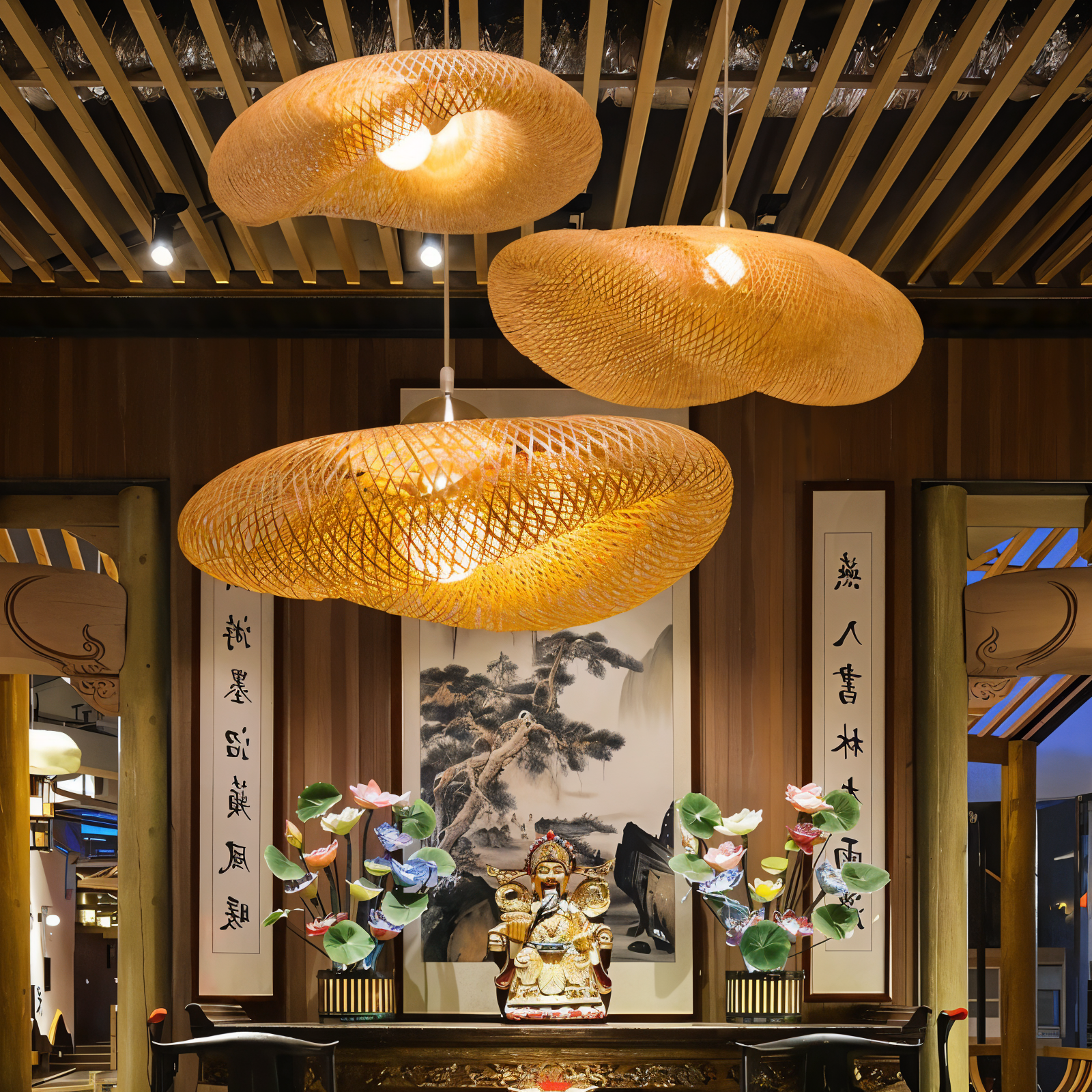 EcoLush Taklampa - Handgjord Rattan Hänglampa - Rustik Boho Lampa