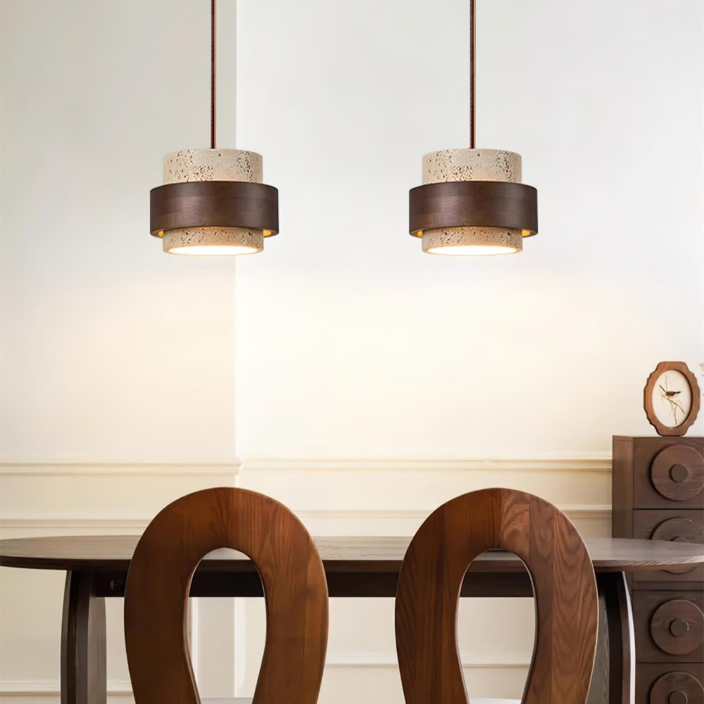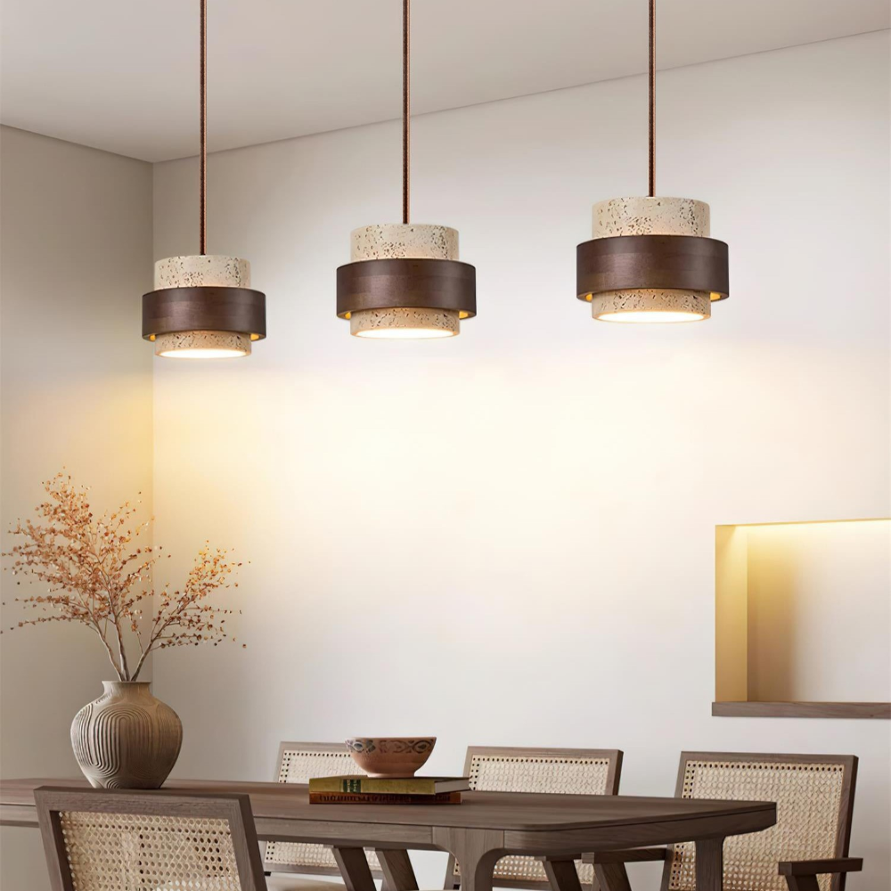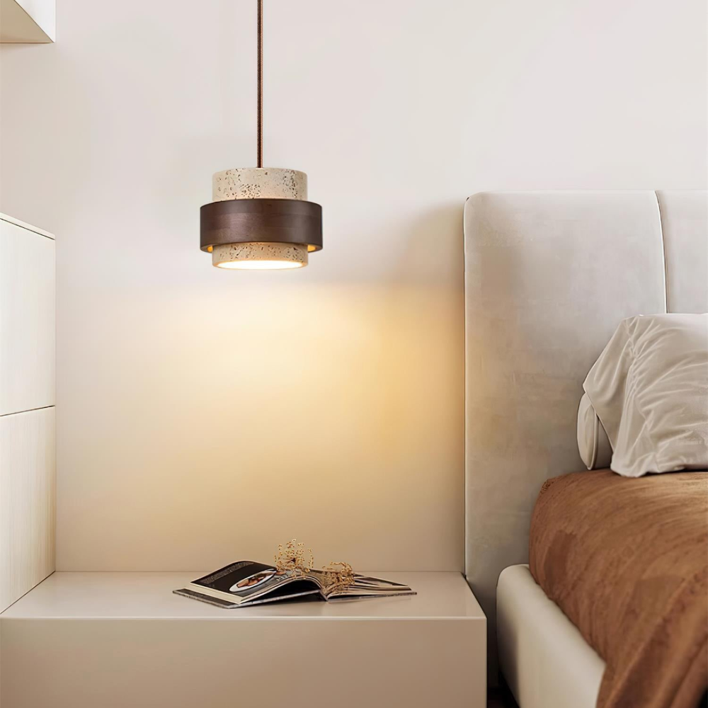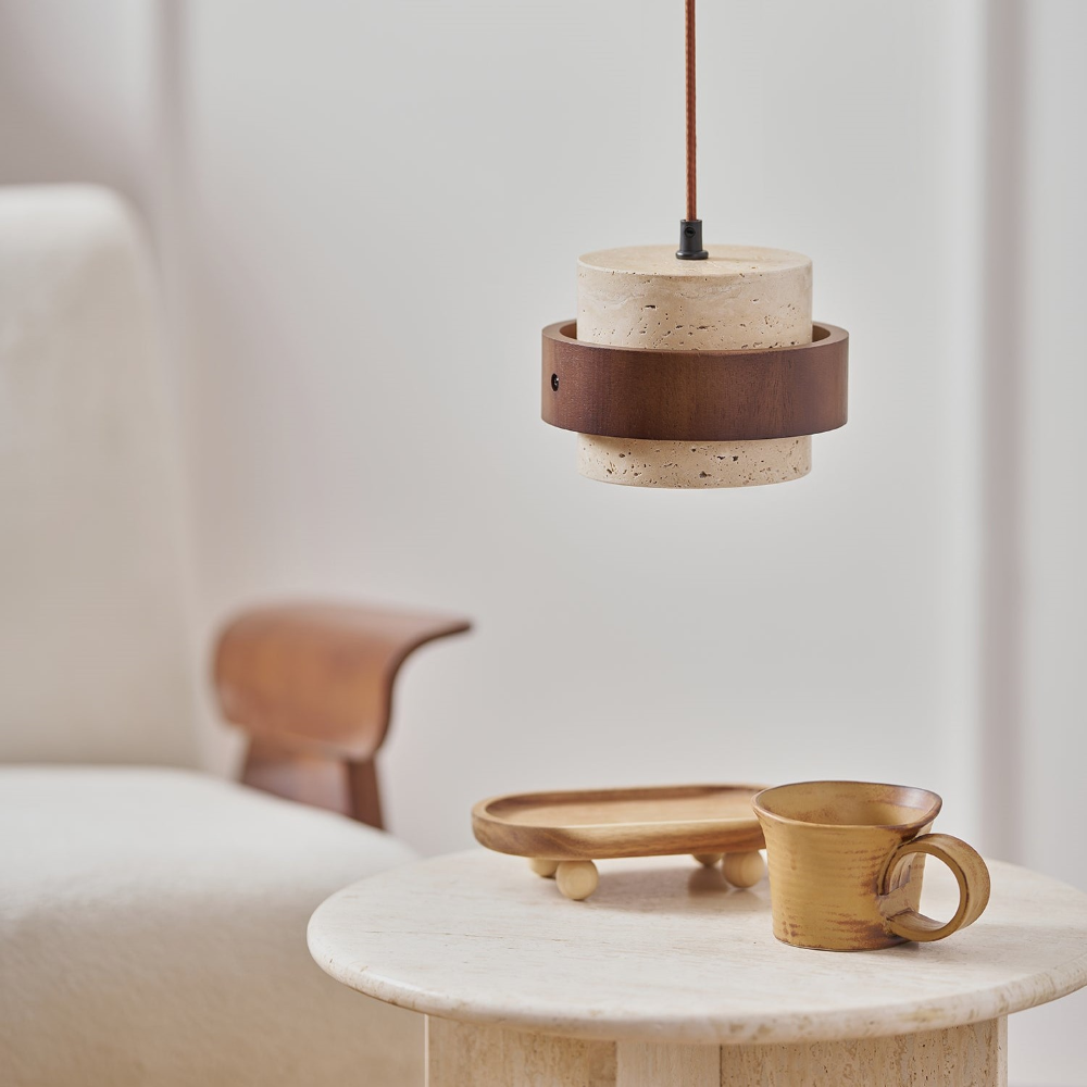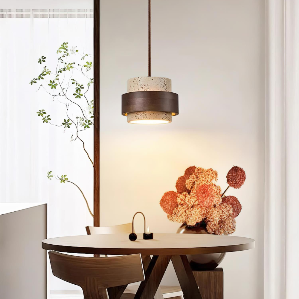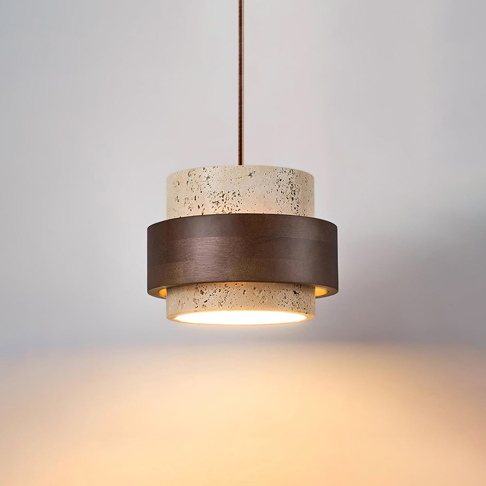 Elegant Travertin Sten Pendellampa – Cylindrisk Hänglampa i Japansk Stil