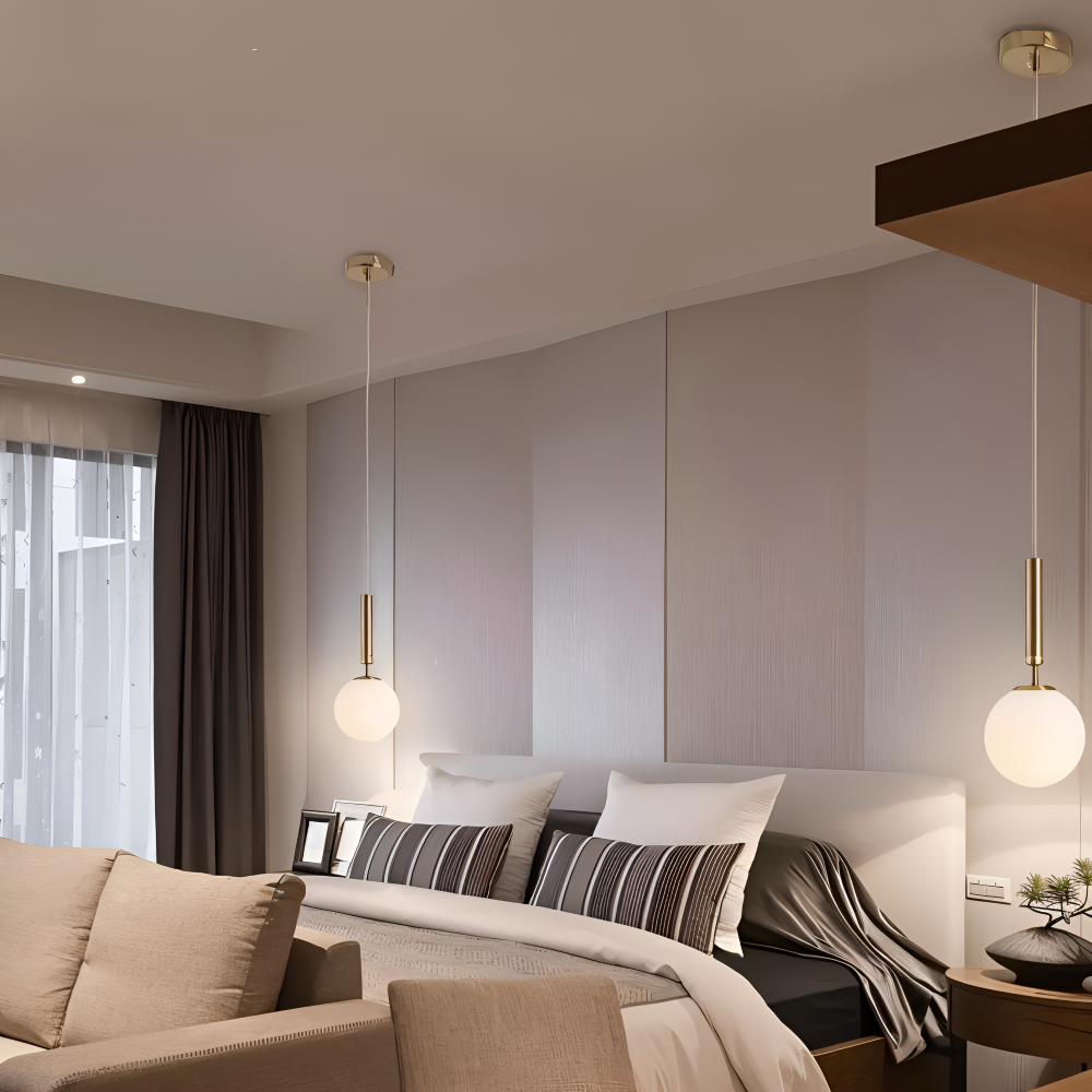 Har du någonsin undrat hur en enkel lampa kan definiera om ett helt rum? FrostGlobe Pendellampa gör just det genom att kombinera en fantastisk rund vit glas skärm med en slank metallkropp. Den framhäver atmosfären i moderna rum och kan perfekt anpassas till varje miljö med den justerbara kabeln. Med sitt mjuka, stämningsfulla ljus förvandlar den ditt rum till ett lyxigt tillflyktsort.
