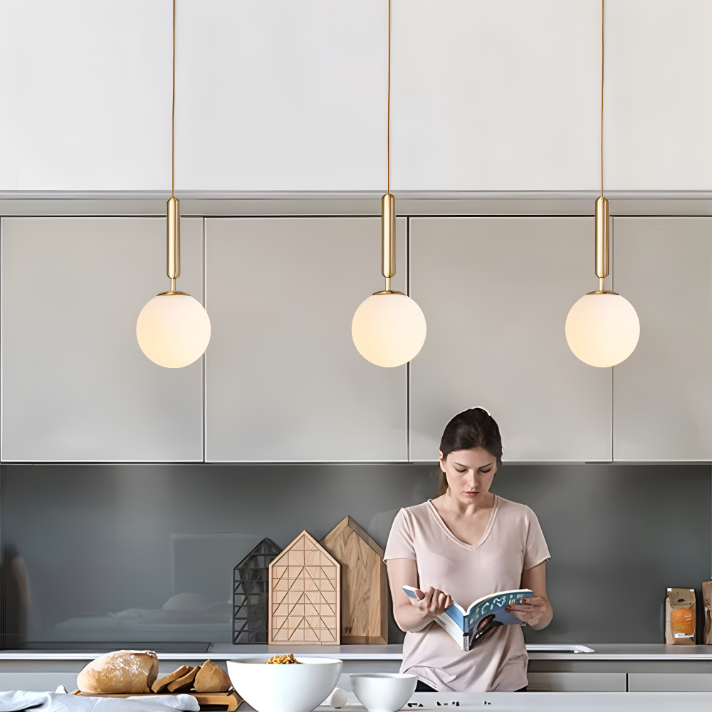FrostGlobe Pendellampa - Rund Vit Glas Skärm Hänglampa för Moderna Rum