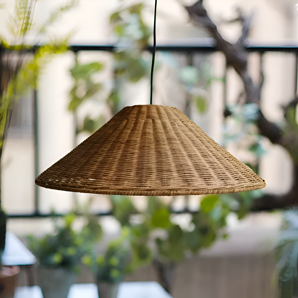 HatWicker Pendellampa - Hänglampa i brun-beige kon-rattan – nedåtriktat ljus