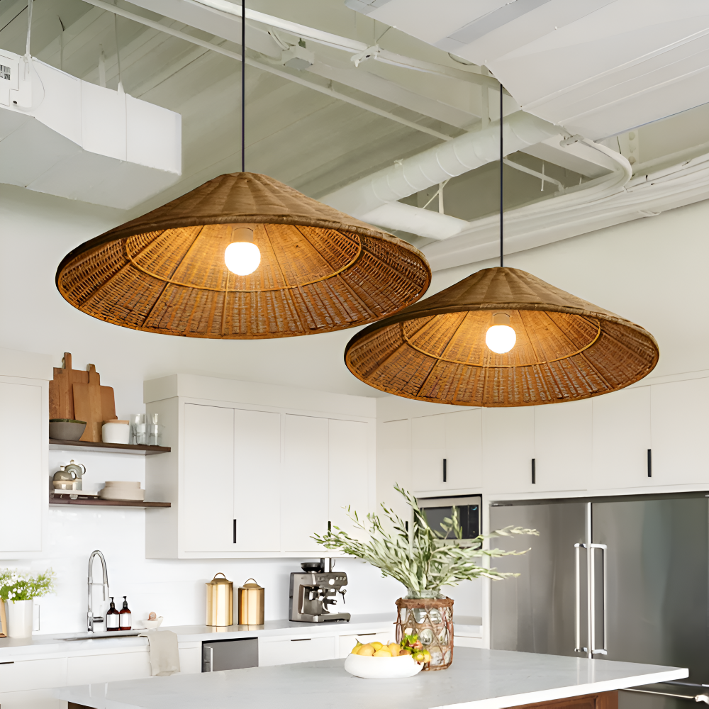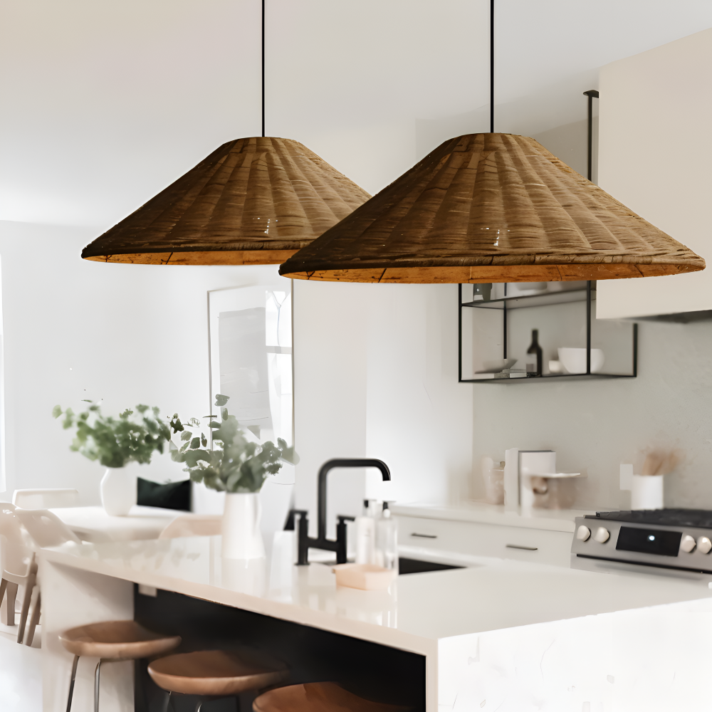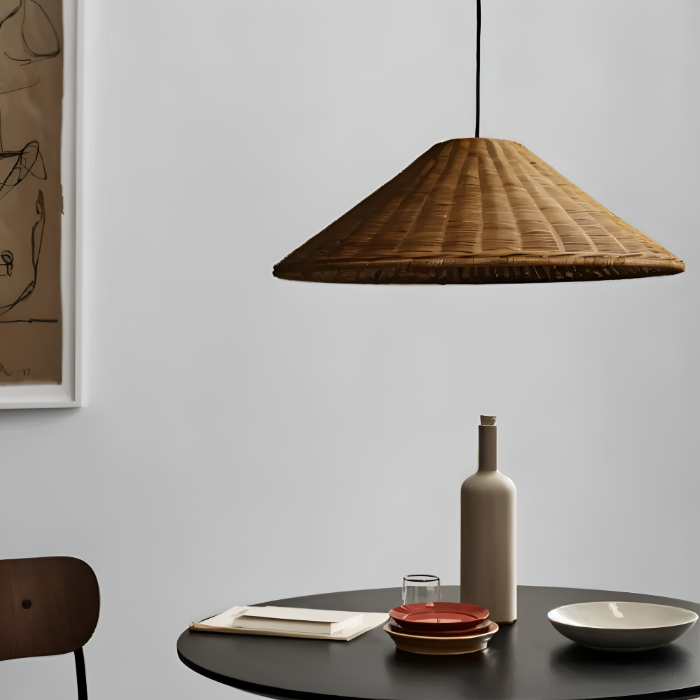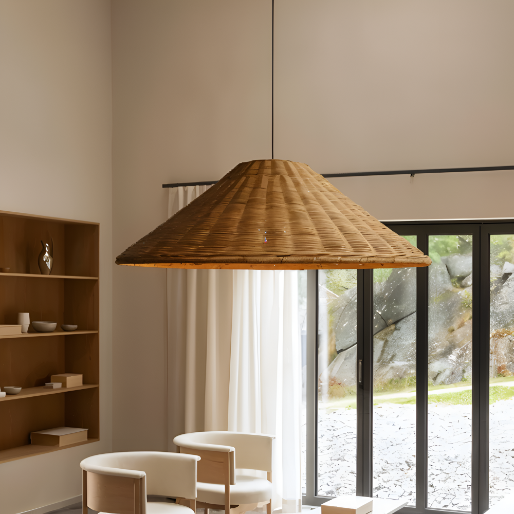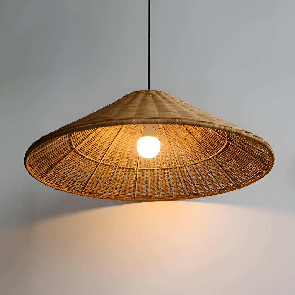 Vill du förvandla ditt vardagsrum till en mysig oas? HatWicker pendellampan med sin unika koniska design som påminner om en rattanhatt är mer än bara en lampa - den är ett statement. Handflätad av hållbar rattan erbjuder den inte bara funktionell belysning, utan skapar också en inbjudande atmosfär som får ditt rum att kännas som en lugn tillflyktsort vid havet.