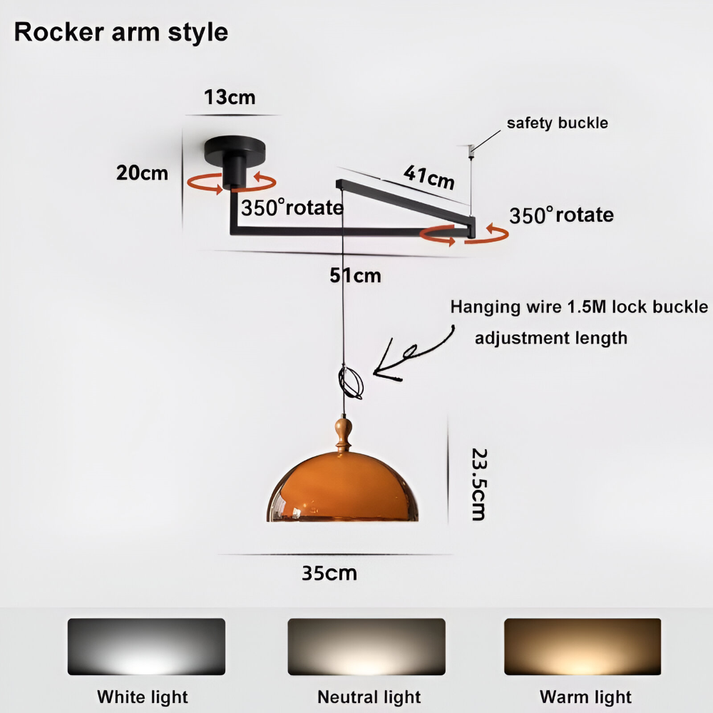 | Paketet innehåller: | 1x Justerbar svängarm pendellampa |