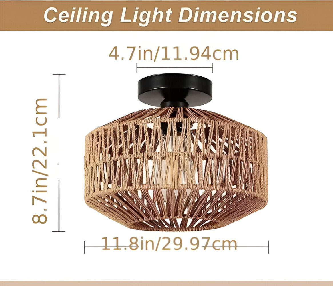 LustreBoho Taklampa - Handgjord Rattan Taklampa - Rattan Flush Mount Lampa
