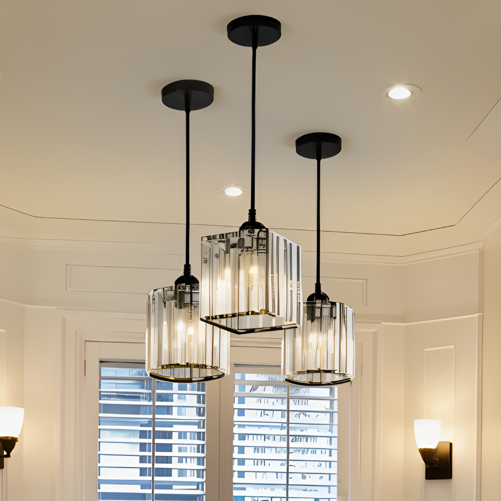 MagesticSpark Pendellampa - Svart Guld Pendellampa Fyrkantig - Kristall Hängande Dekorationer Lampa
