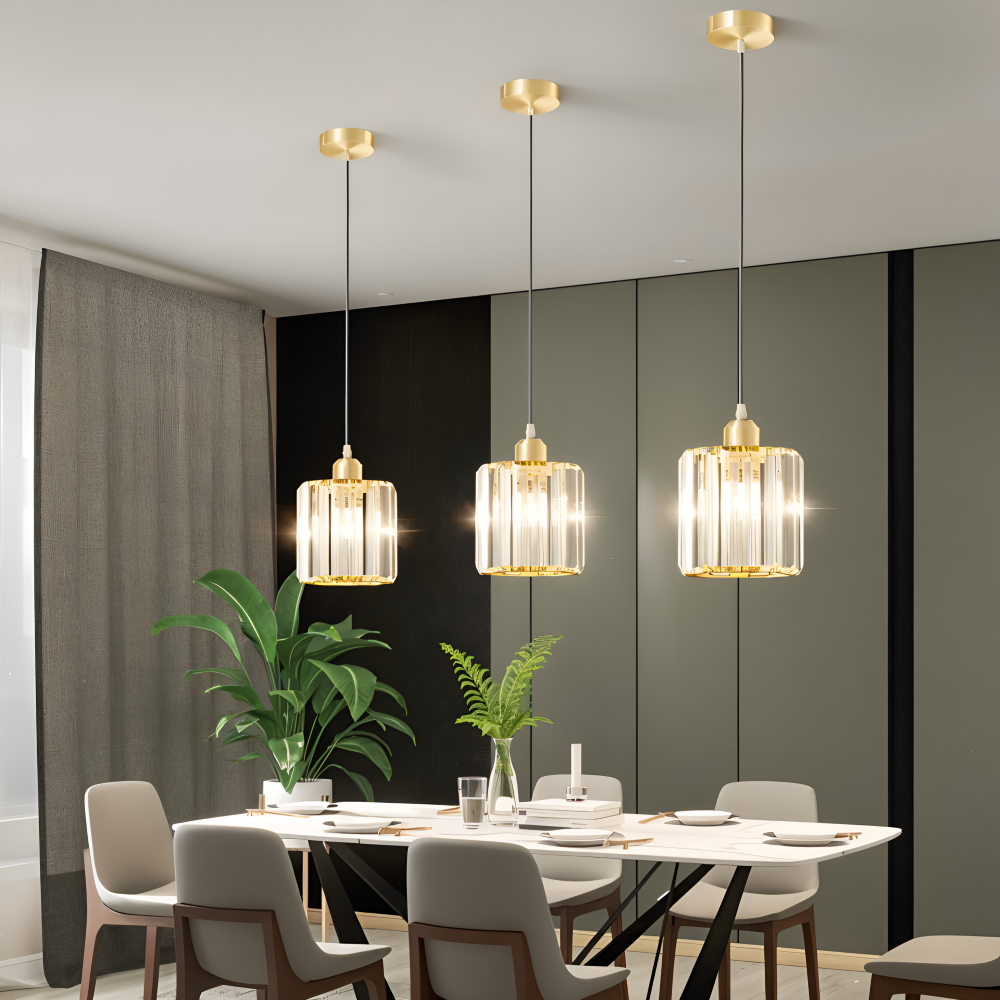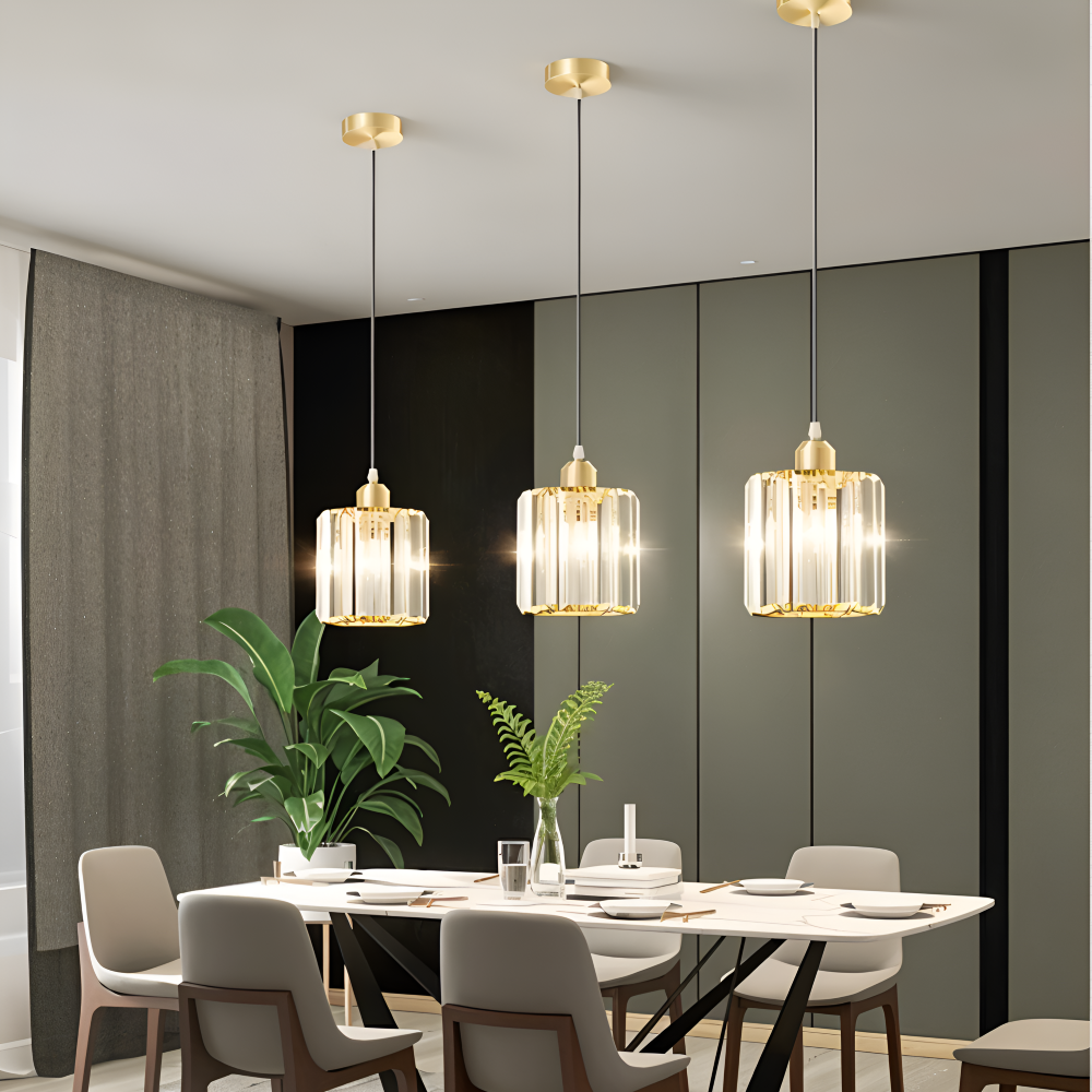 Letar du efter en lampa som ger ditt hem en touch av upphöjdhet? Upptäck MagesticSpark Pendellampa - här möts lyx och hantverk. Med en utsökt blandning av svarta eller gyllene skärmar och skimrande, kristall-liknande glas lyser denna pendellampa inte bara upp ditt rum, utan gör det till ett stort statement. Dess unika design reflekterar ljuset vackert och skapar en varm, konstnärlig atmosfär som får varje rum att framstå som majestätiskt och livfullt.