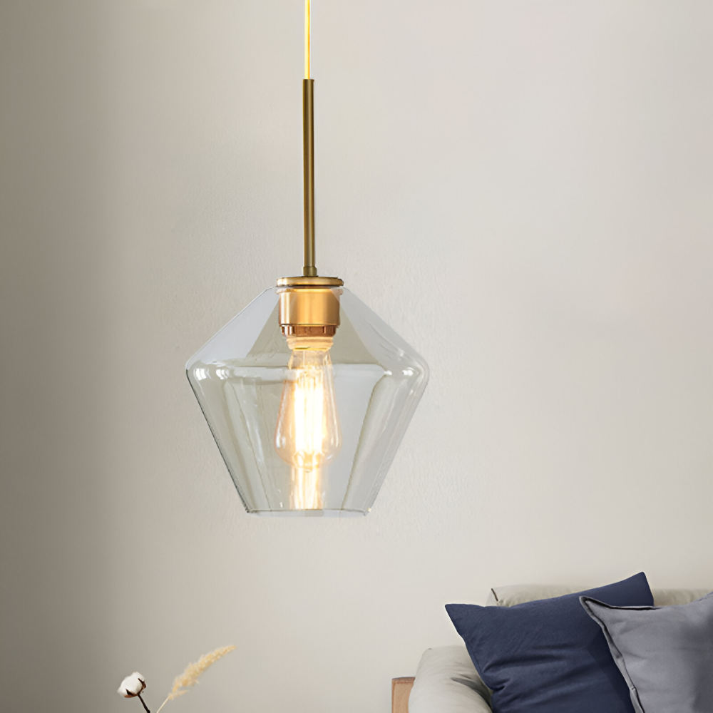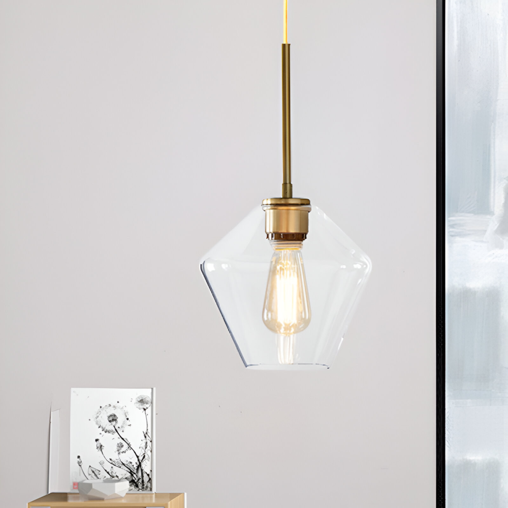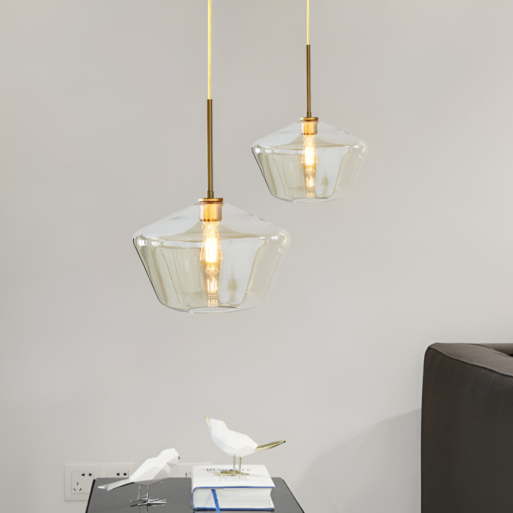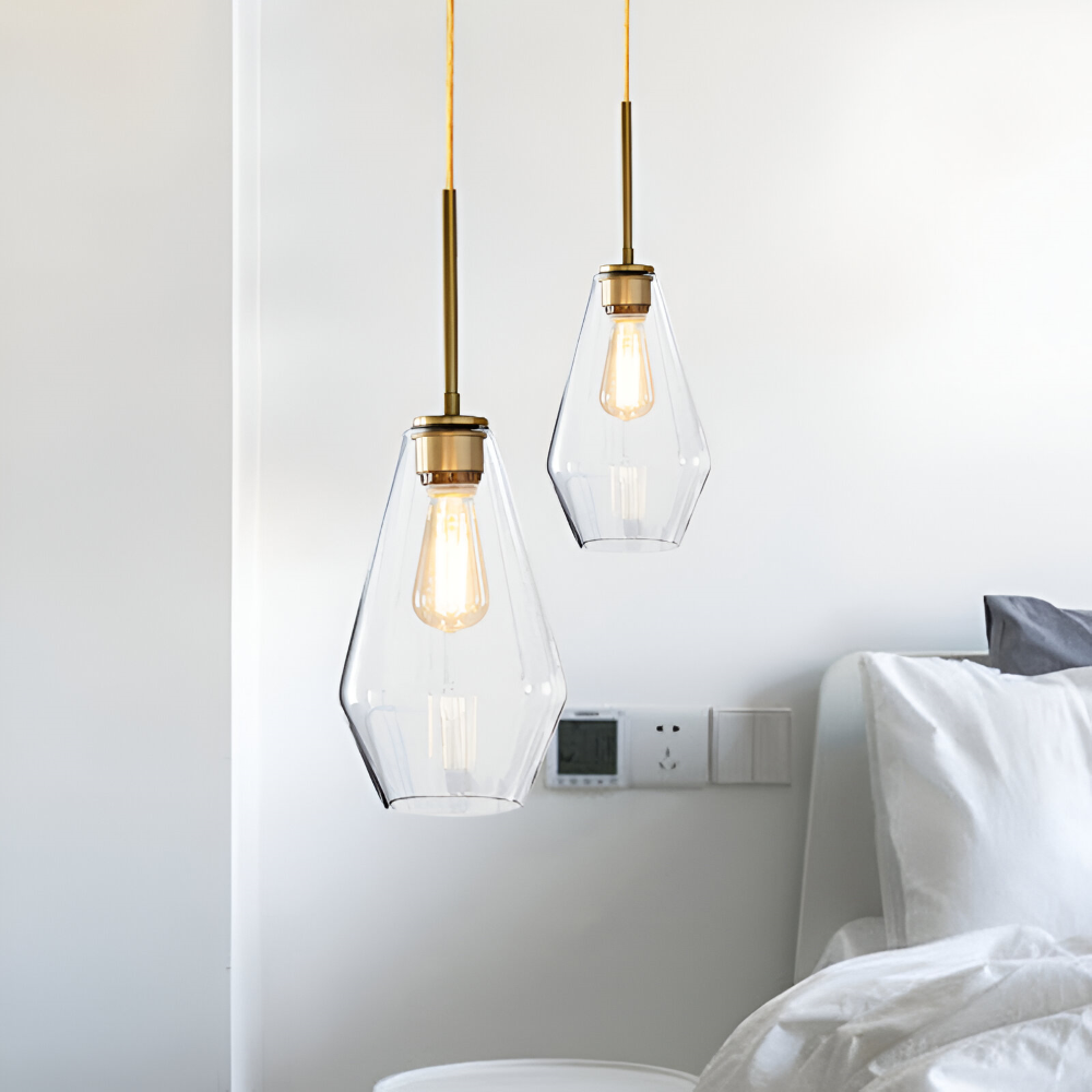 Glas pendellampa: Klar, modern design för inomhusbruk.