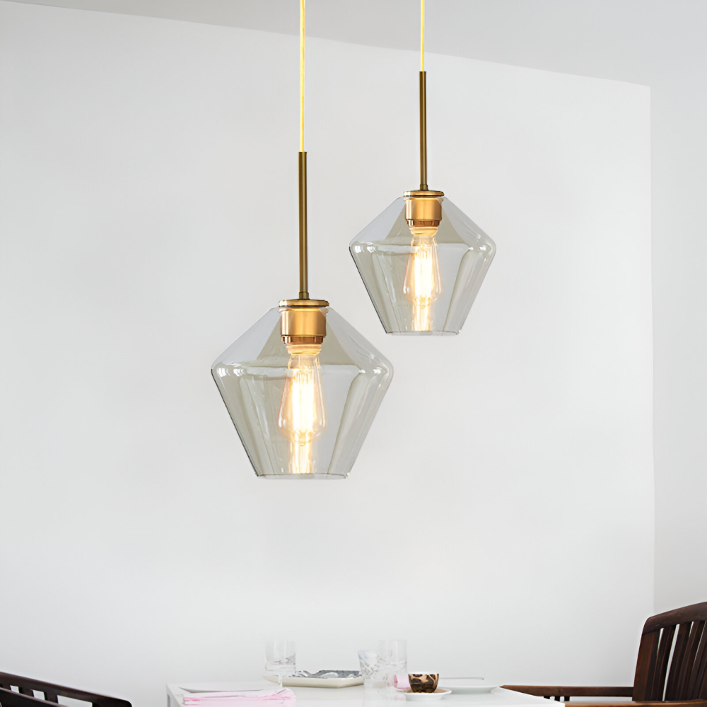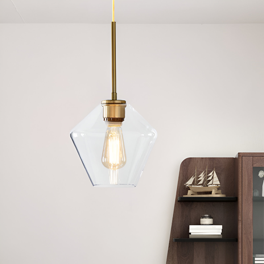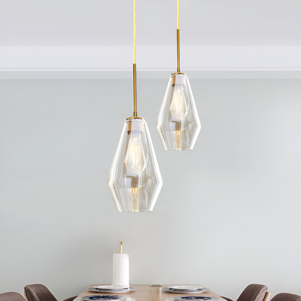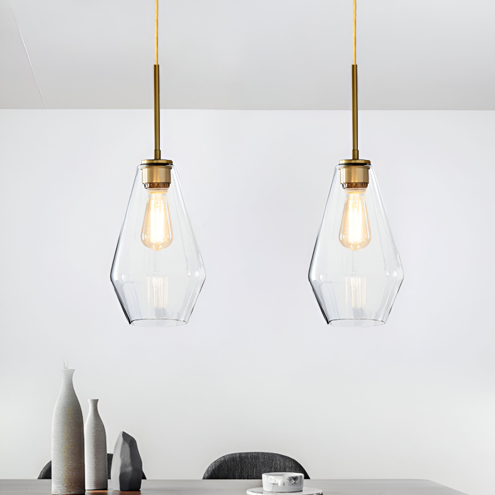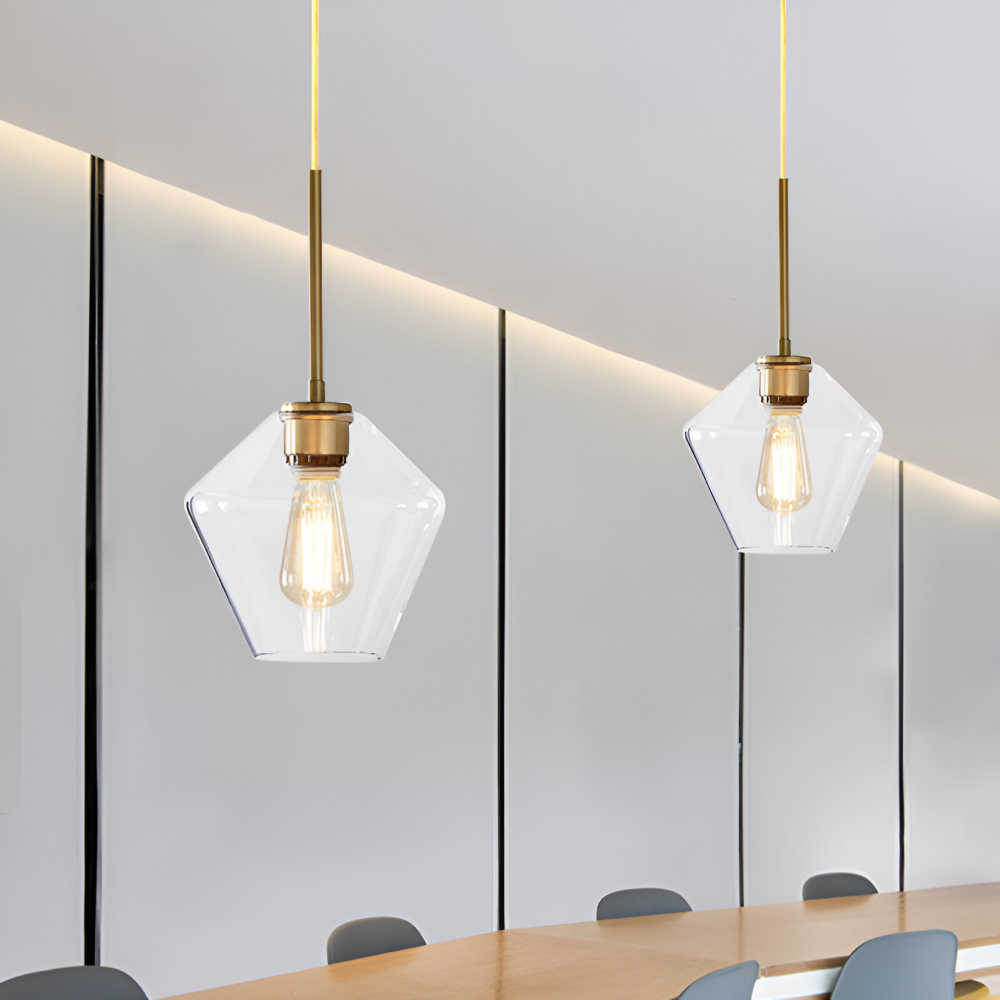 Glas pendellampa: Klar, modern design för inomhusbruk.