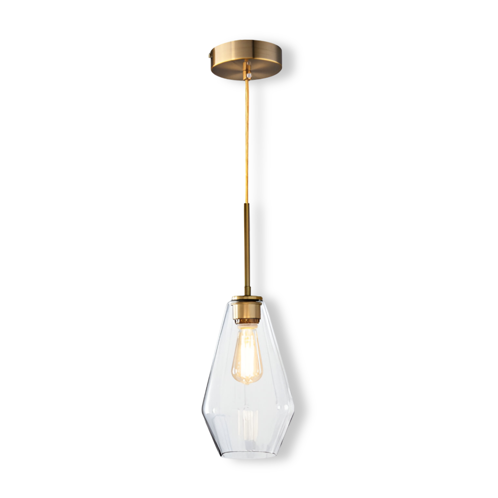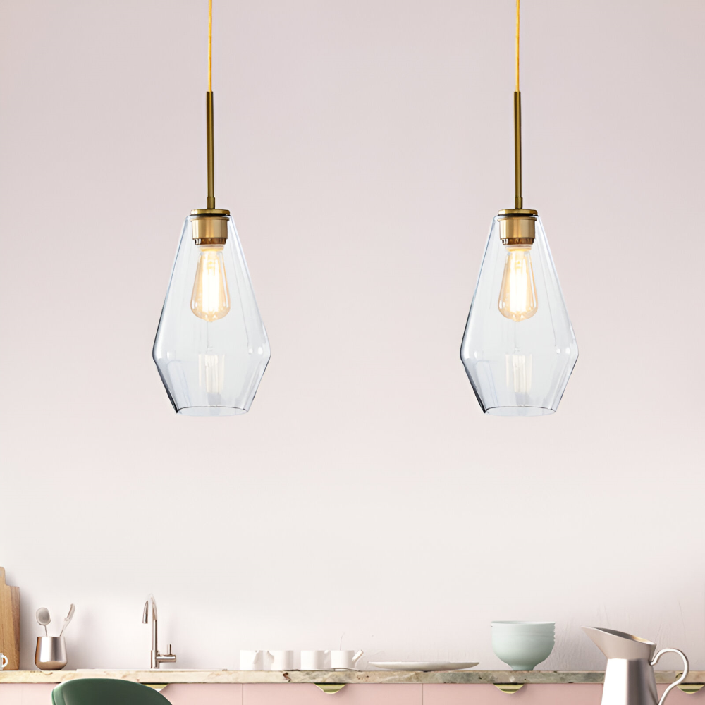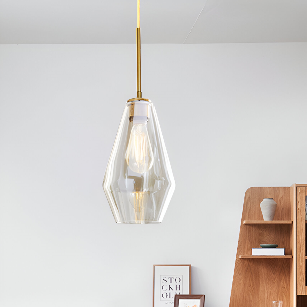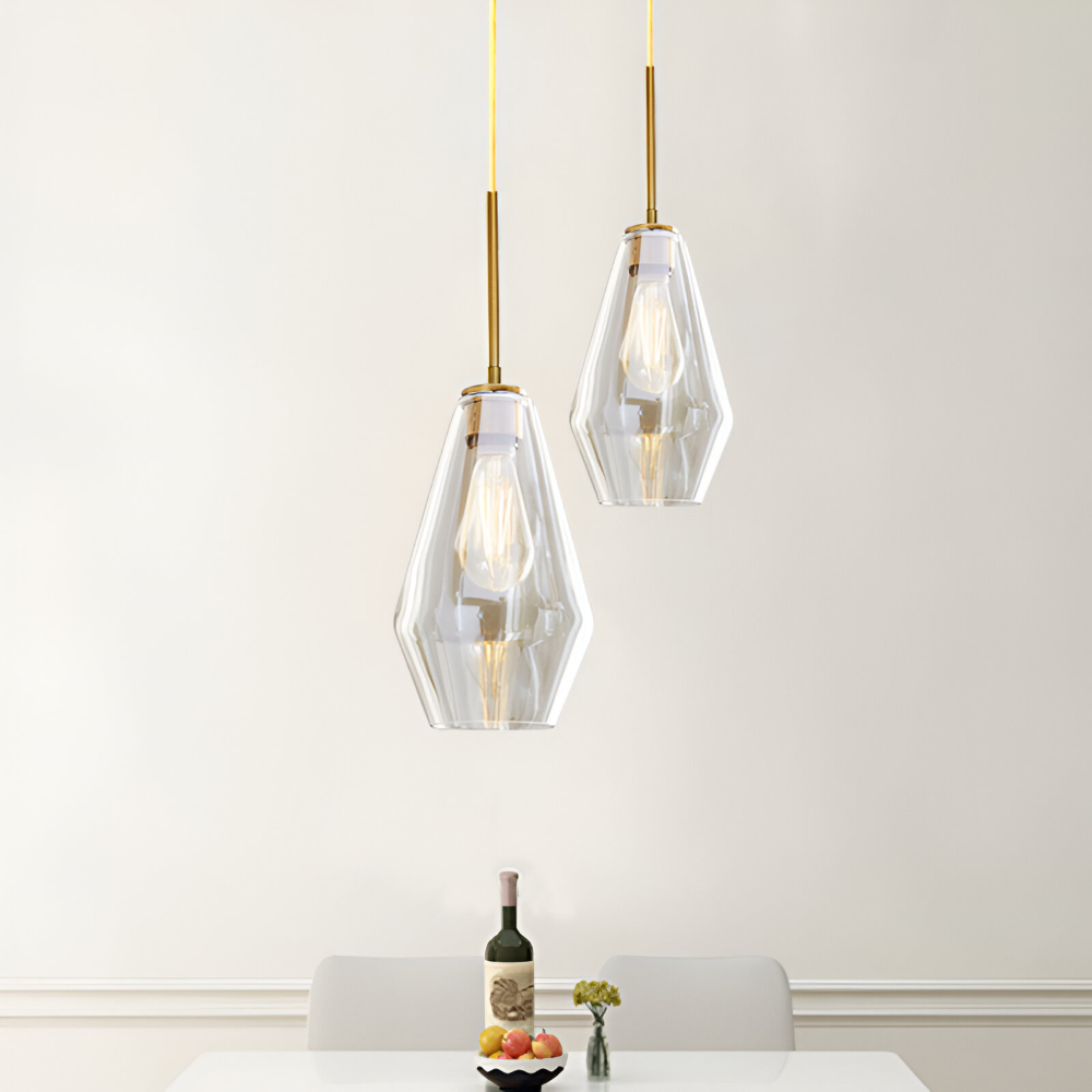 Glas pendellampa: Klar, modern design för inomhusbruk.