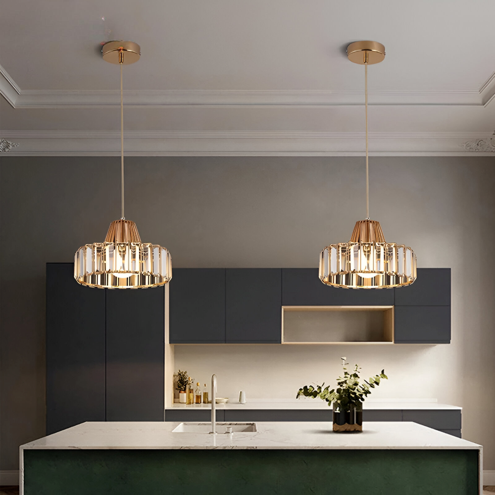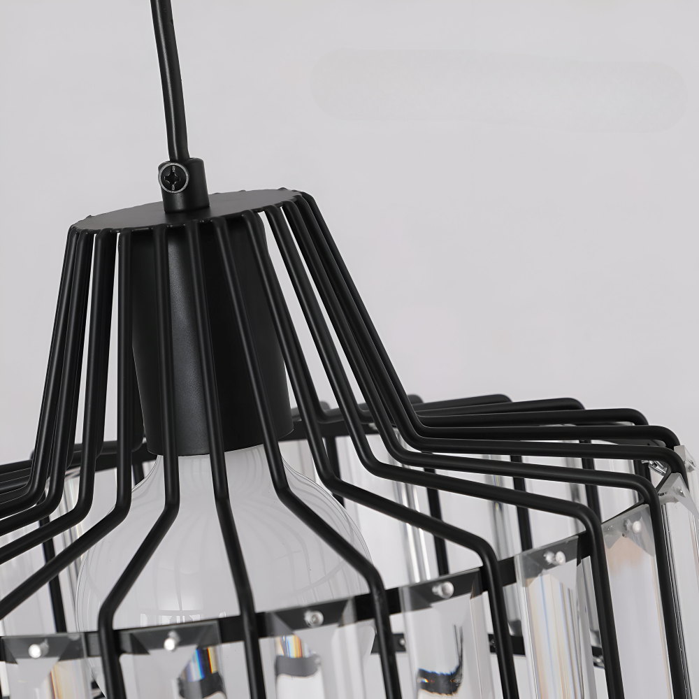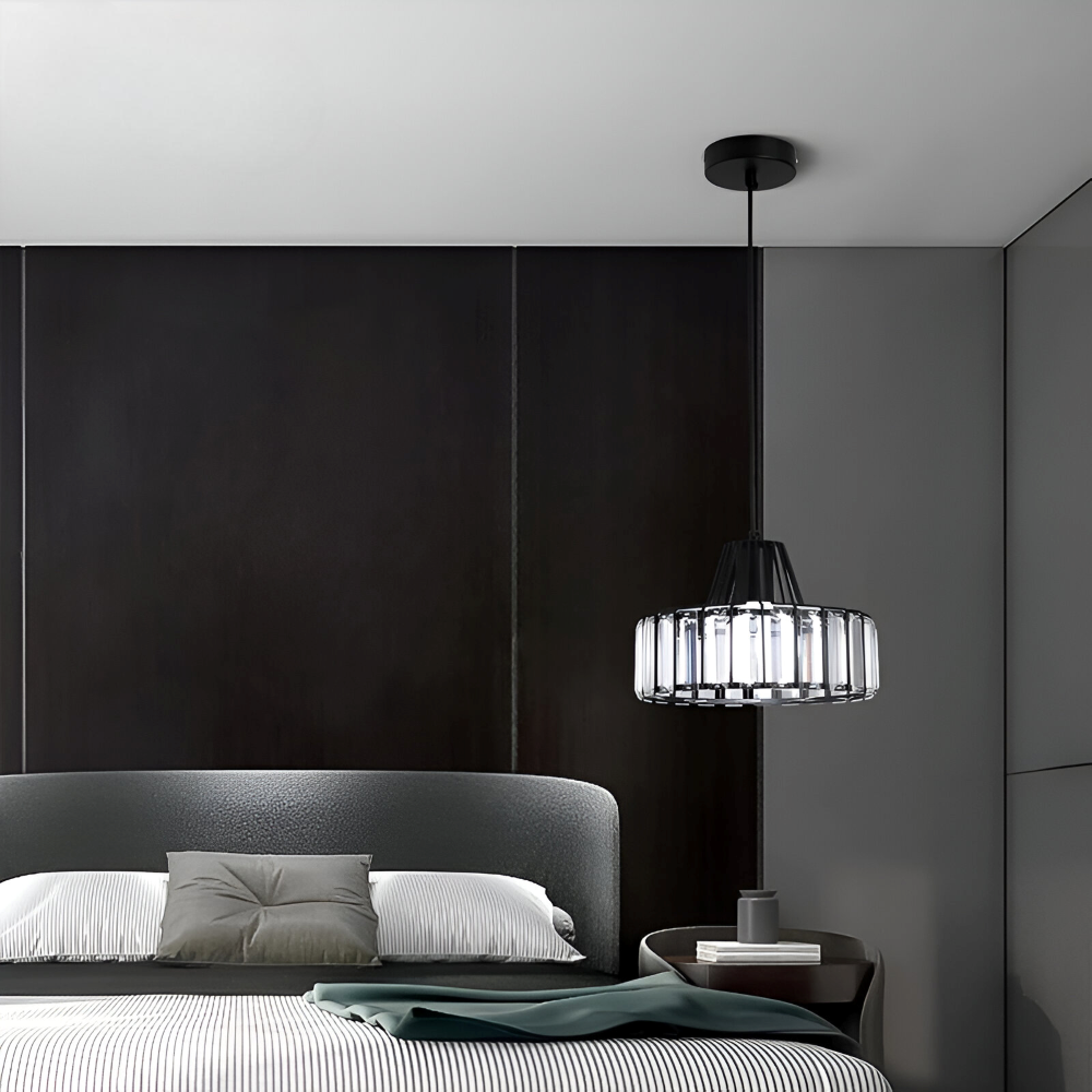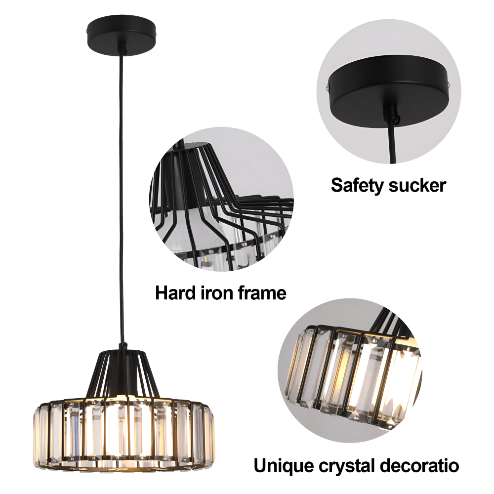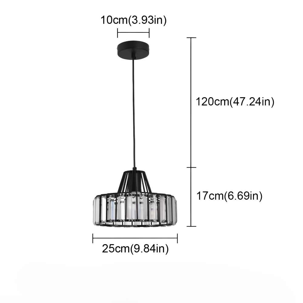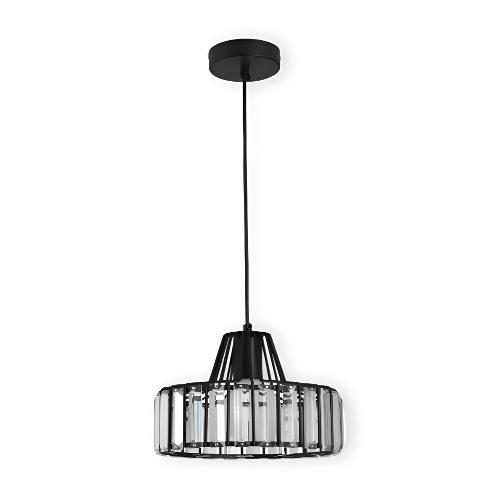 Denna pendellampa lyser inte bara upp ditt rum, utan förvandlar det. Med sin eleganta svarta eller gyllene yta och skimrande kristalldetaljer skapar den en tidlöst modern look.