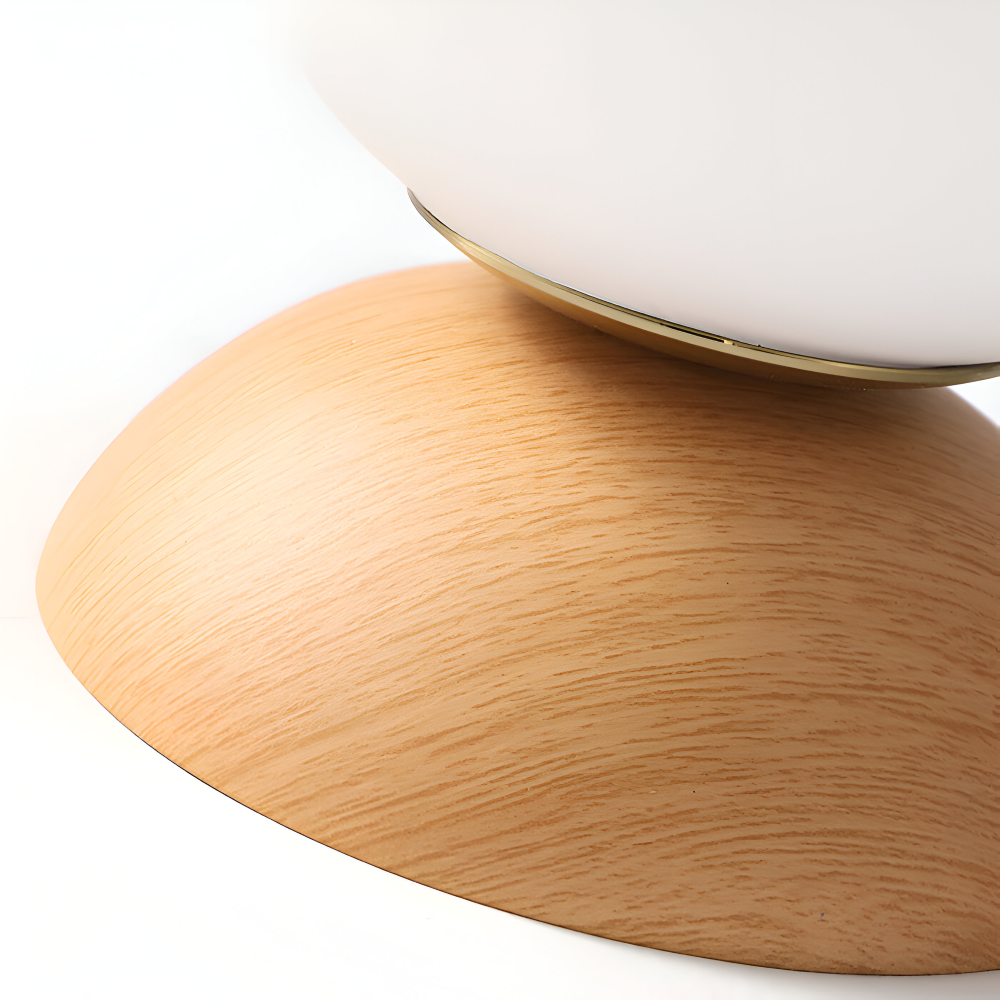Den valnötsbas med halvmatt yta och den pärlformade skärmen gör denna lampa till en iögonfallande detalj i varje rum.