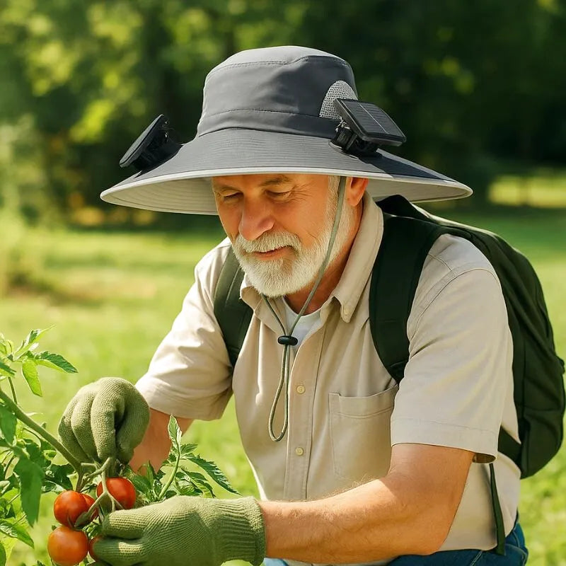Chapeau ventilateur solaire pour le jardinage et les aventures en plein air