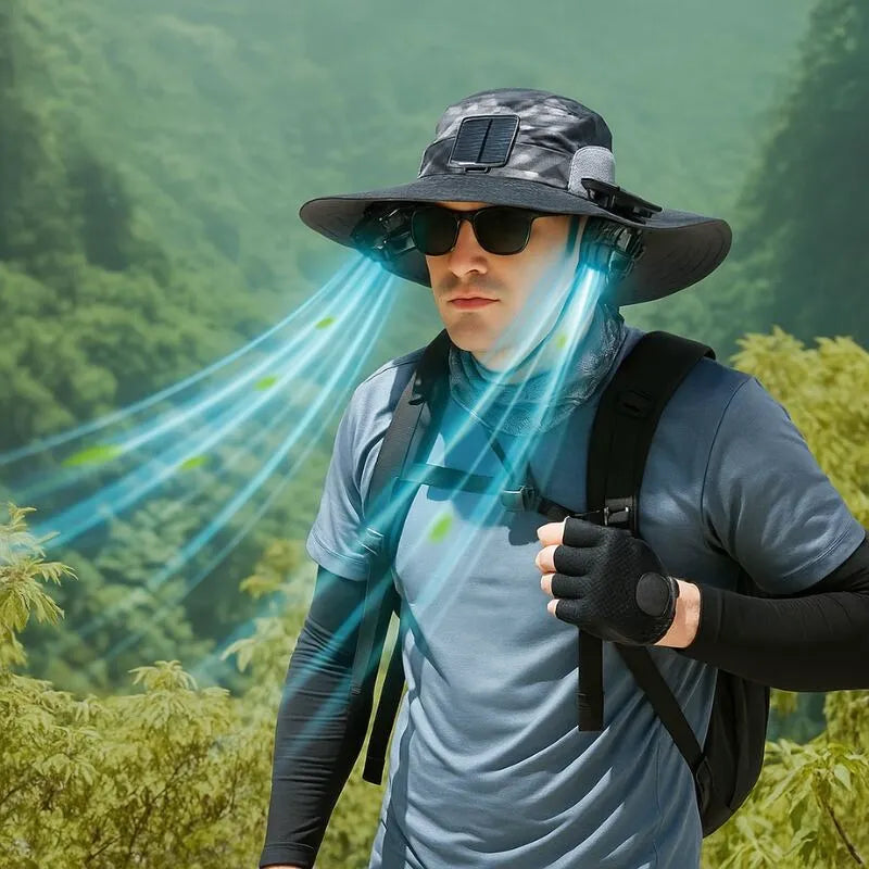 Le chapeau utilise deux ventilateurs alimentés par des panneaux solaires intégrés pour apporter une brise rafraîchissante où que vous alliez. En plein soleil, les ventilateurs s'allument automatiquement et vous gardent au frais sans que vous ayez à appuyer sur un bouton. C'est le moyen le plus simple de lutter contre la chaleur.