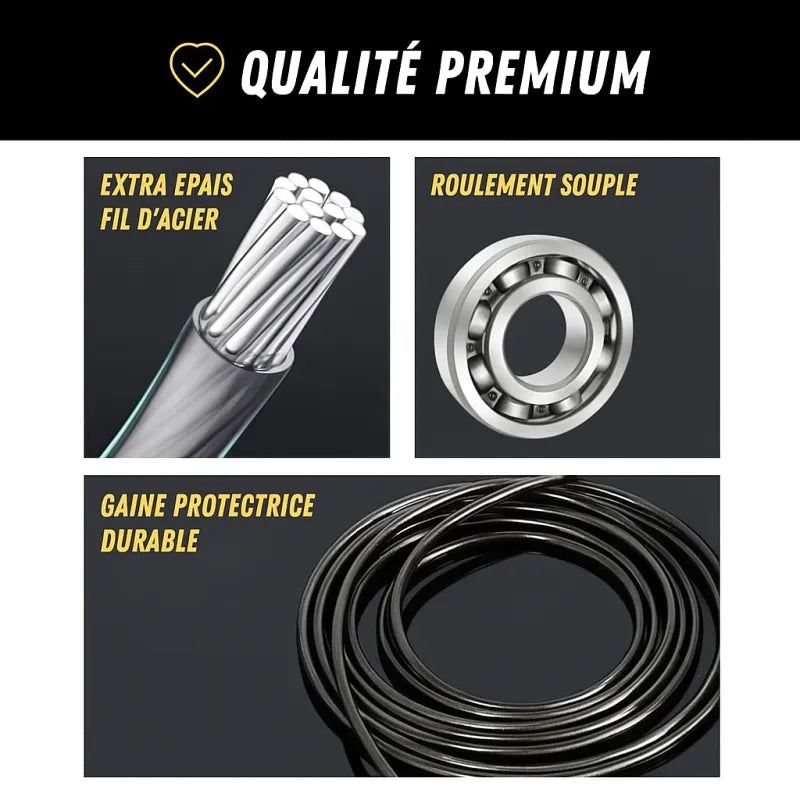 - Fil d'acier durable : Pour une durée de vie plus longue et des performances optimales pendant vos séances d'entraînement.