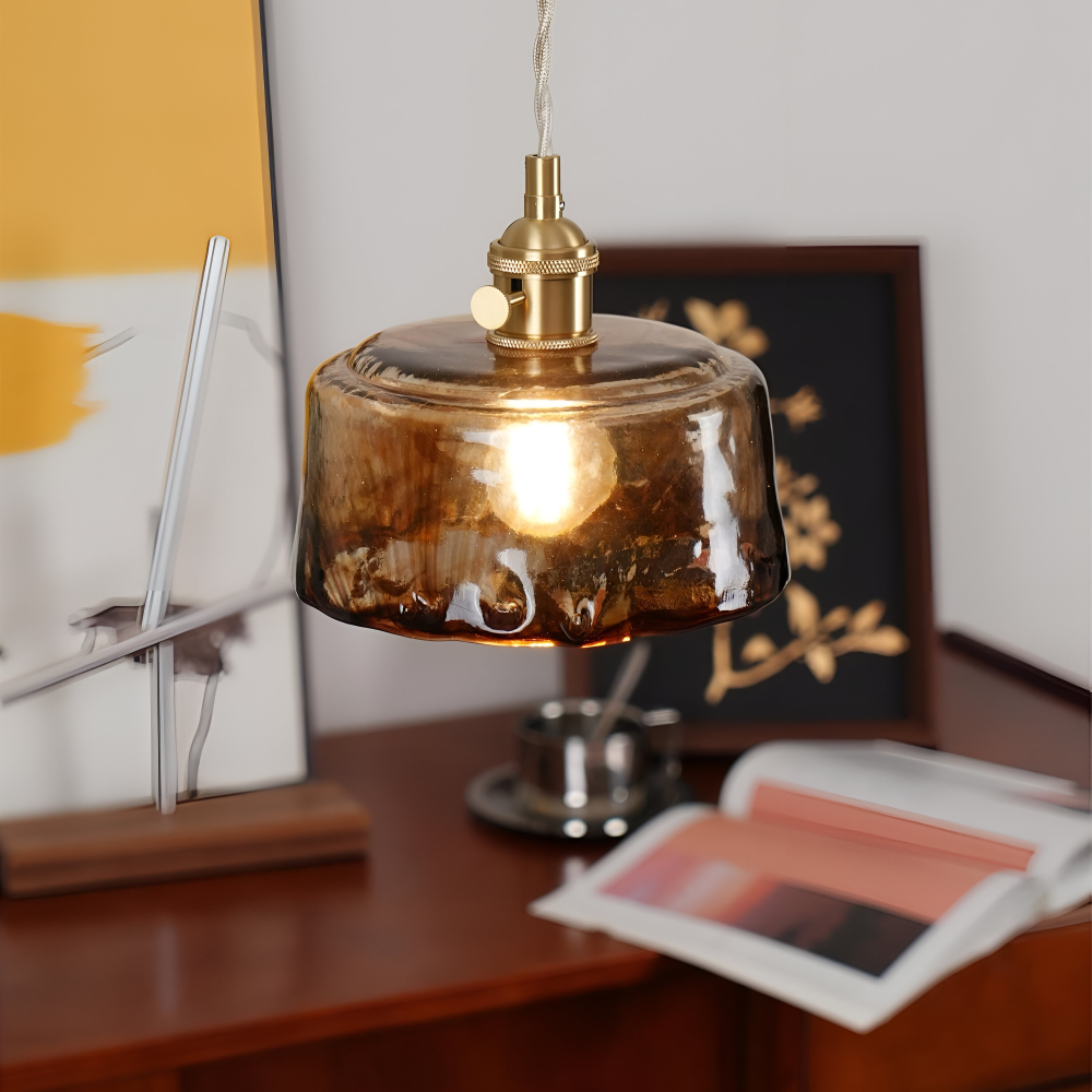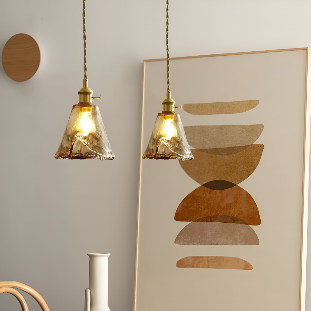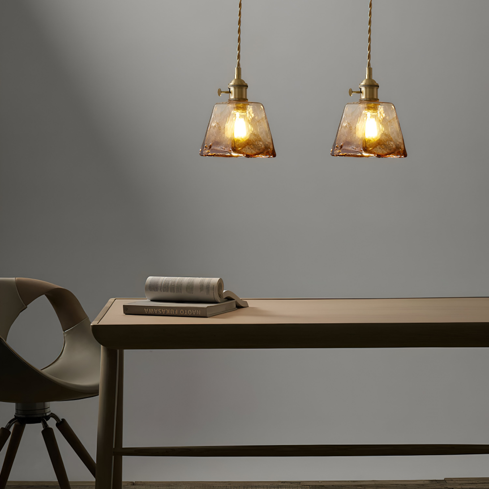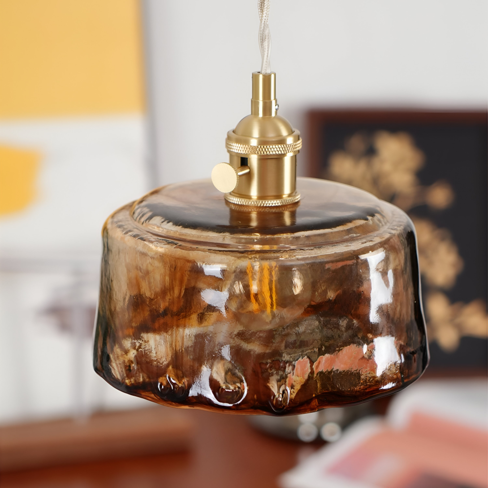 Twist Deco Glas Pendellampa - Antik Mässing Hänglampa för Vintage Känsla