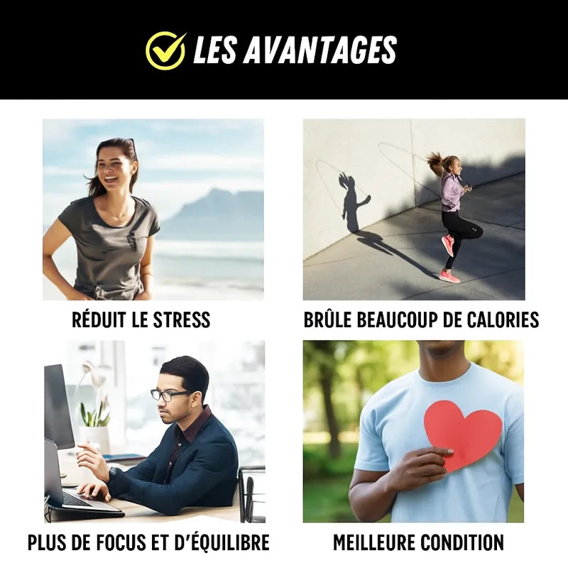 L'utilisation d'une corde à sauter est l'un des moyens les plus efficaces de brûler des calories et d'améliorer votre condition physique générale. Cette corde à sauter réglable vous permet non seulement d'augmenter votre endurance, mais aussi d'améliorer votre coordination, votre vitesse et votre équilibre. Le compteur vous motive et vous incite à faire de plus en plus de sauts et à vous fixer de nouveaux objectifs.
